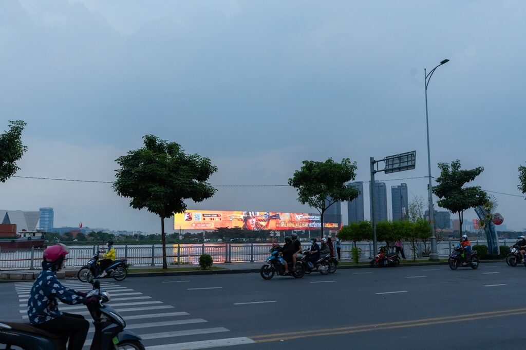 Trong khi đó, hình ảnh của sản phẩm Crossfire: Legends cũng xuất hiện tại nhiều bảng quảng cáo lớn đặt tại những vị trí đắc địa trong thành phố. Ấn tượng nhất chính là bảng skyled bên bờ đối diện Bến Bạch Đằng với tầm nhìn cực kỳ đẹp mắt. Đặc biệt khi về đêm, các bảng hình ảnh này trở nên nổi bật hơn bao giờ hết.