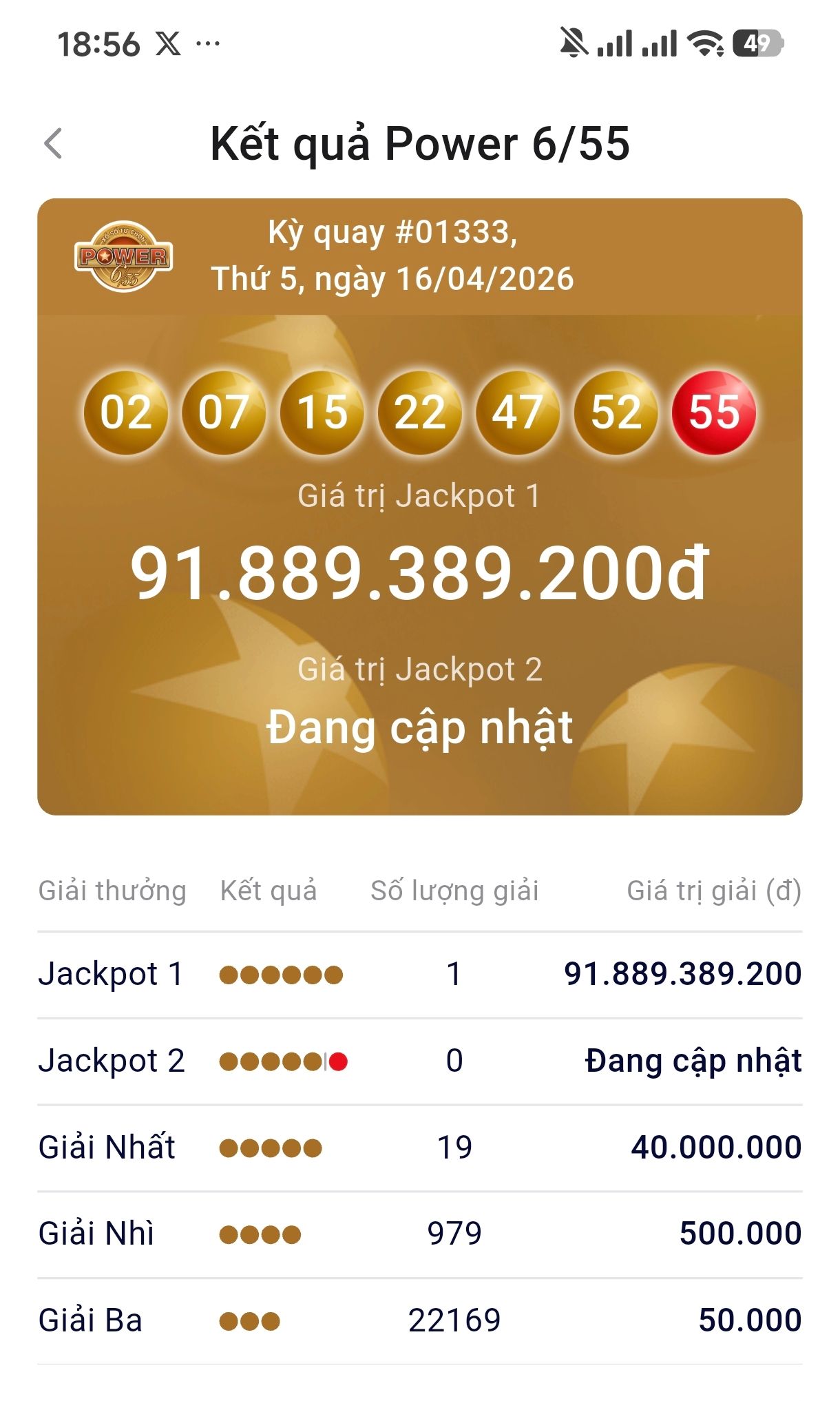 Anh DT chính là người chơi duy nhất đã may mắn trúng giải Jackpot 1 tại kỳ quay số mở thưởng thứ 133 diễn ra vào ngày 16/04/2026. Tổng giá trị giải thưởng mà anh nhận được lên tới chính xác 91.889.389.200 đồng. Tấm vé đổi đời này được anh mua qua kênh phân phối điện thoại, cụ thể là ứng dụng Vietlott SMS của nhà mạng MobiFone. Ngay tại sân khấu của buổi lễ trao giải, anh DT đã mở ứng dụng ngân hàng trên điện thoại để xác nhận số tiền thực nhận sau khi hoàn tất các thủ tục khấu trừ thuế thu nhập cá nhân là 82.701.450.280 đồng.