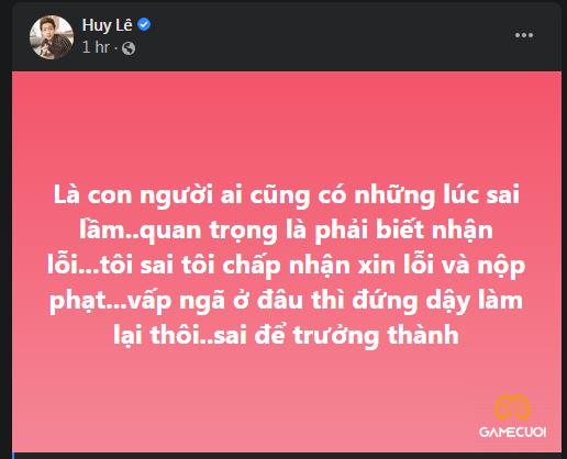 Bài đăng xin lỗi cộng đồng của Huy Lê…