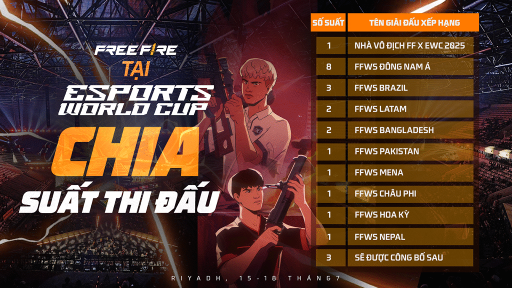 • Free Fire tại Esports World Cup 2026: khởi tranh vào ngày 15 tháng 7, thông tin chi tiết sẽ được công bố sau