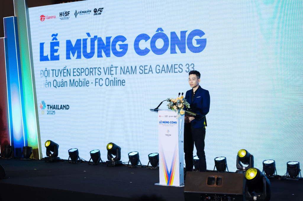 Phát biểu khai mạc buổi lễ, ông Nguyễn Đắc Bá Nhật – đại diện Garena Việt Nam ghi nhận đóng góp to lớn của các cá nhân tham dự SEA Games 33 cho nền thể thao điện tử nước nhà. Ông nhấn mạnh: “Thành tích tại SEA Games không chỉ là một dấu ấn riêng lẻ, mà đó là kết tinh của cả một quá trình phát triển bền bỉ của thể thao điện tử Việt Nam.”, đồng thời khẳng định: “Hơn 15 năm qua, Garena luôn kiên trì theo đuổi một định hướng xuyên suốt: xây dựng một hệ sinh thái Esports toàn diện, chuyên nghiệp và bền vững, gắn kết chặt chẽ với hệ thống thể thao quốc gia và phù hợp với định hướng quản lý của Nhà nước.”