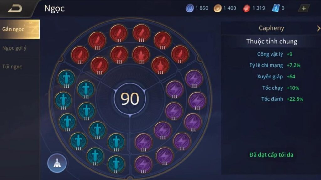 - Ngọc đỏ: 10 viên Tỉ lệ chí mạng/Sát thương chí mạng.