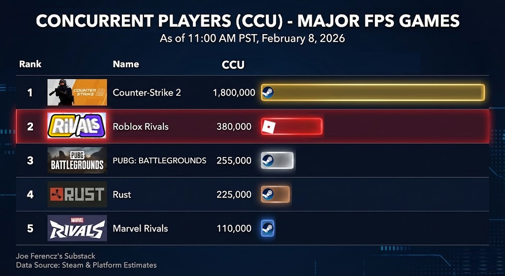 Joe Ferencz nhận định số lượng CCU của Rival trên roblox ngang ngửa CS2