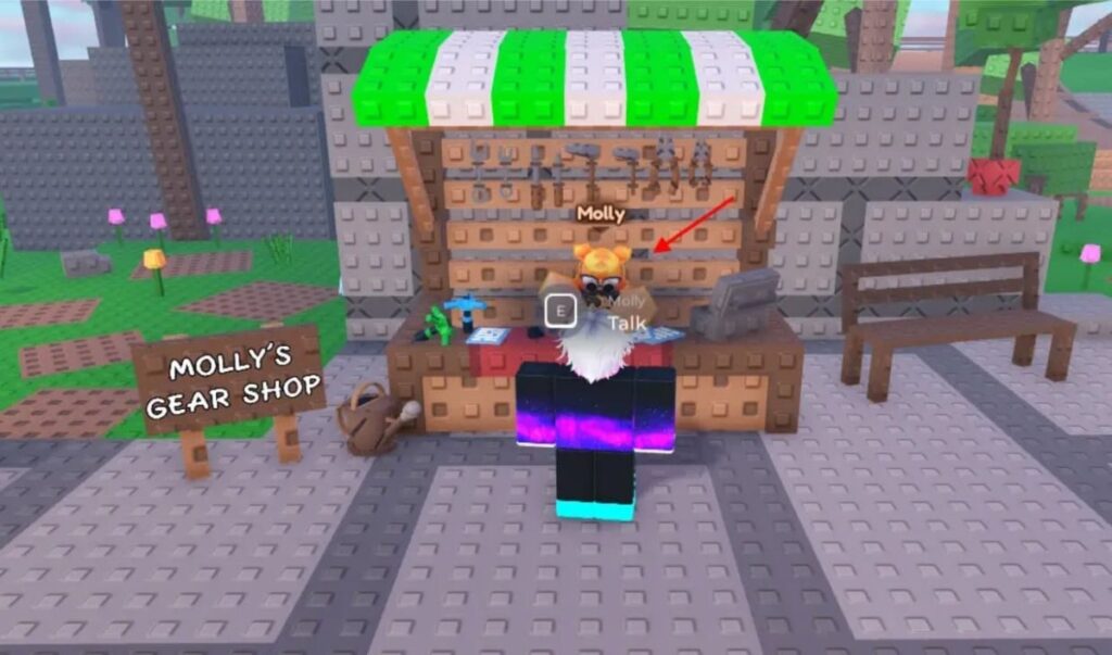 Trong Garden Horizons, tất cả dụng cụ đều có thể mua từ Gear Shop – cửa hàng dụng cụ do NPC Molly quản lý. Người chơi di chuyển đến vị trí trung tâm bản đồ, tương tác với Molly rồi chọn mua gear cần thiết.