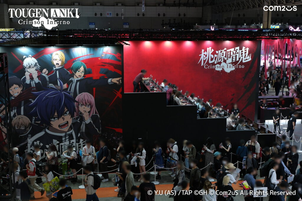 TOUGEN ANKI Crimson Inferno là tựa game mới do Com2uS phát triển dựa trên TV anime TOUGEN ANKI (桃源暗鬼) đang được phát sóng kể từ tháng 7 năm nay. Gian hàng độc quyền tại khu vực triển lãm chung của Tokyo Game Show lần này đã thu hút hàng trăm nghìn lượt khách tới tham quan và trải nghiệm, duy trì bầu không khí sôi động xuyên suốt sự kiện.