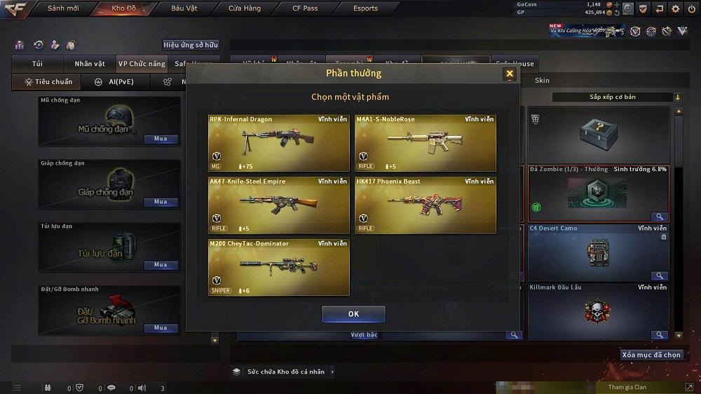 Bên cạnh hai bộ vũ khí chủ đề Women’s Day, Kho Báu Hoàng Gia Ruby còn mang đến Hòm Tùy chọn VIP với nhiều vật phẩm giá trị như: CheyTac M200 Dominator, HK417 Phoenix Beast, AK-47-Knife Steel Empire, M4A1-S Noble Rose, RPK Infernal Dragon.