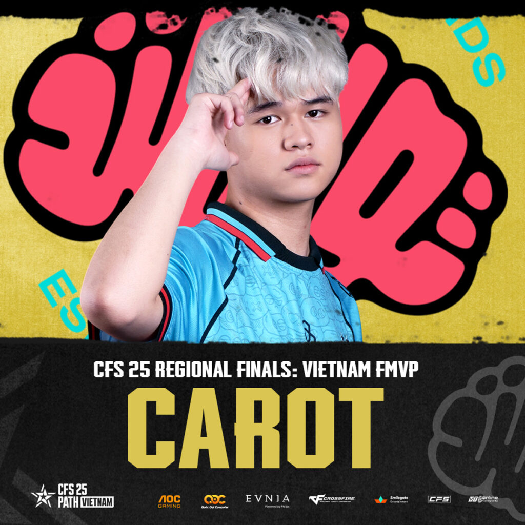 Câu chuyện của Twisted Minds sẽ không thể trọn vẹn nếu không nhắc đến cái tên Carot, MVP của giải đấu. Từng là một thành viên dự bị ở một đội bán chuyên, một cái tên ít được biết đến trong giới chuyên nghiệp, Carot đã có một bước nhảy vọt không thể tin được khi gia nhập Twisted Minds. Anh không chỉ lấp đầy khoảng trống mà còn trở thành trụ cột vững chắc, một “đầu tàu” đầy cảm hứng cho cả đội.