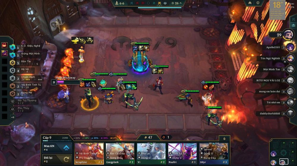Lưu ý chỉ nên roll xuống ngưỡng 20-30 vàng để duy trì lợi tức. Nếu còn thiếu 1-2 quân cờ để hoàn tất 3 sao, bạn có thể roll mạnh tay hơn để bứt phá sức mạnh và giành lại thế trận. Khi đã nâng cấp xong dàn chủ lực, hãy lên cấp 6 và slow roll tìm Jhin 3 sao. Ở mốc này, đội hình chuẩn sẽ gồm: Sivir, Malphite, Kennen, Gnar, Jhin và Rakan.