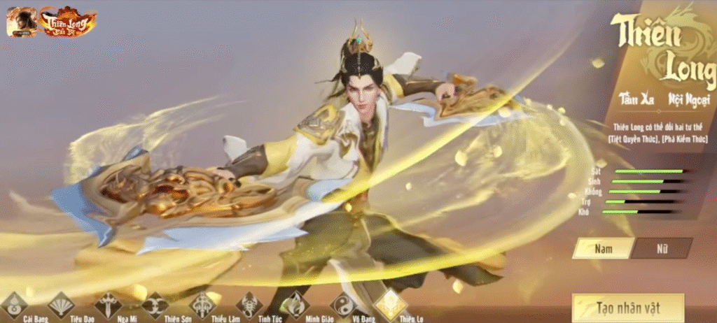 Điểm đặc trưng nhất của môn phái này nằm ở sức mạnh “nội ngoại song tu”, cho phép kết hợp linh hoạt giữa nội công và ngoại công. Nhờ sự dung hòa này, Thiên Long không chỉ duy trì được lượng sát thương ổn định mà còn đảm bảo khả năng kiểm soát và phòng thủ trong những thời điểm then chốt.