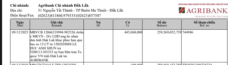 Toàn bộ số tiền đấu giá đã được chuyển trực tiếp đến MTTQ Việt Nam – Tỉnh Đắk Lắk để khắc phục hậu quả do cơn bão số 13 gây ra tại miền Trung